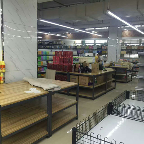 Foldable Supermakret Wooden Promotion Display Shelving With Metal Frame